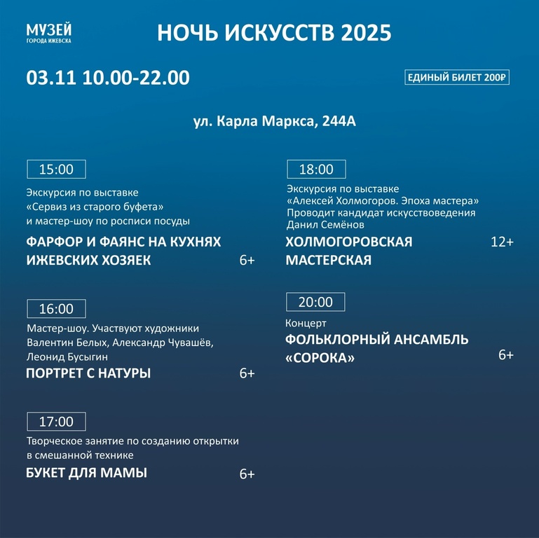 0+Музей Ижевска приглашает 3-4 ноября на традиционную ежегодную акцию.