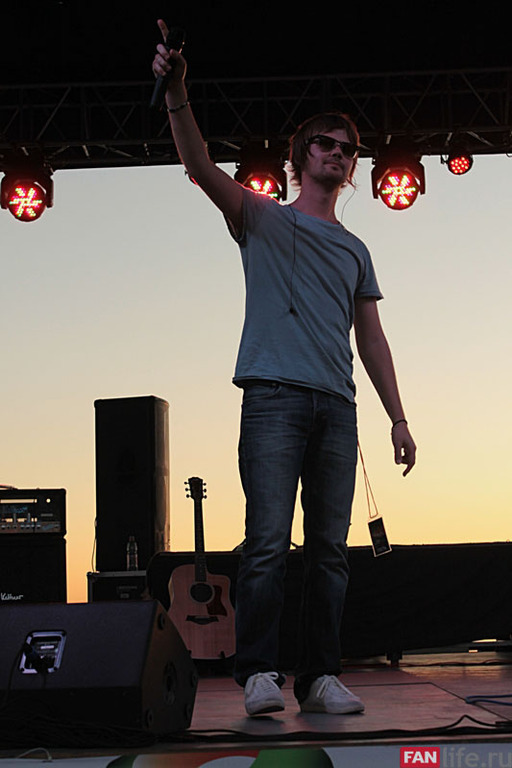 Захар Май появился на набережной пораньше специально для того, чтобы взглянуть на выступления региональных коллективов. Именно он принимал эстафетную палочку у музыкантов дневного блока. Захар приехал на фестиваль не совсем здоровым. На пресс-конференции он признался журналистам, что застудил лицевой нерв, поэтому говорить, а тем более петь ему в этот вечер будет крайне сложно. Но разве такая мелочь может помешать выступлению настоящего профессионала? Его не остановит ничто, даже неожиданно сломавшаяся гитара. Пока в срочном порядке певцу искали новый музыкальный инструмент, ему пришлось исполнять несколько своих композиций аккапельно. Ну а когда гитара была найдена и настроена, Захар показал всё свое мастерство и исполнительский талант.